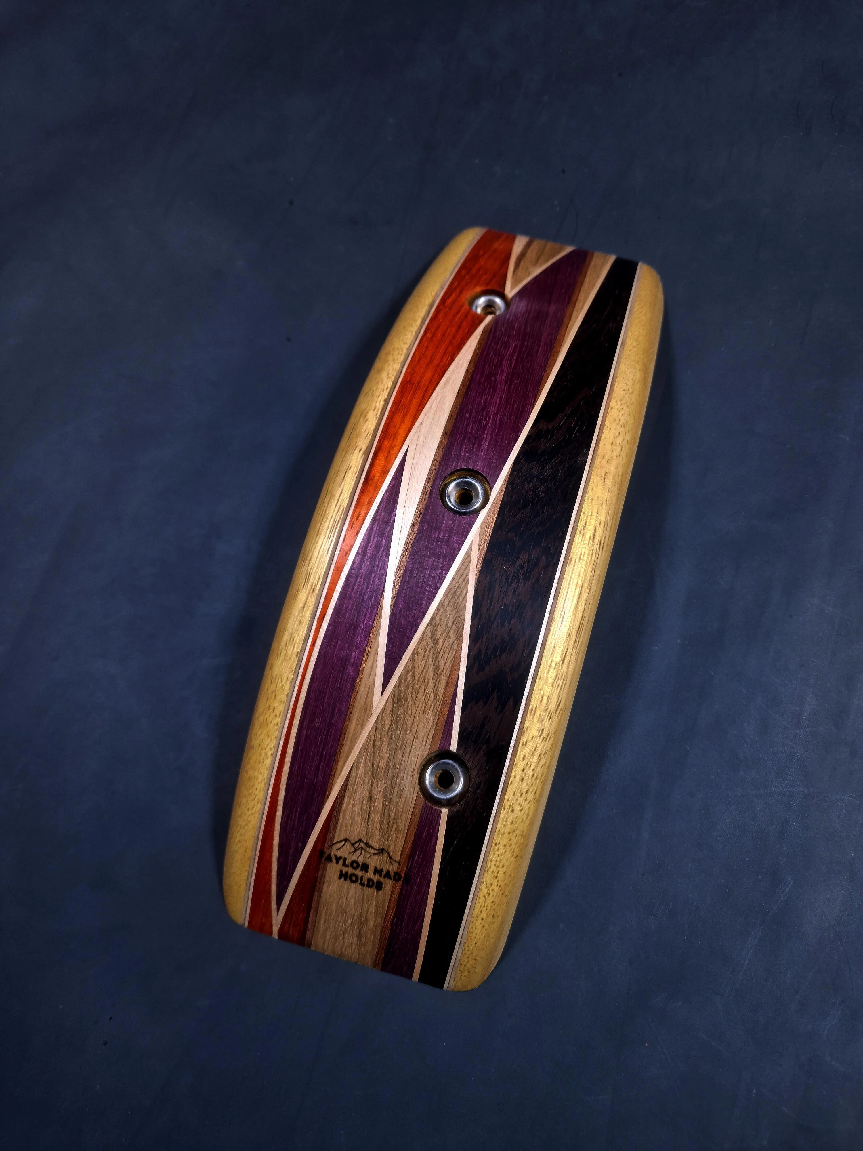 A single hold made from a laminated mix of hardwoods, all retaining their natural colour wave strata mosaic.